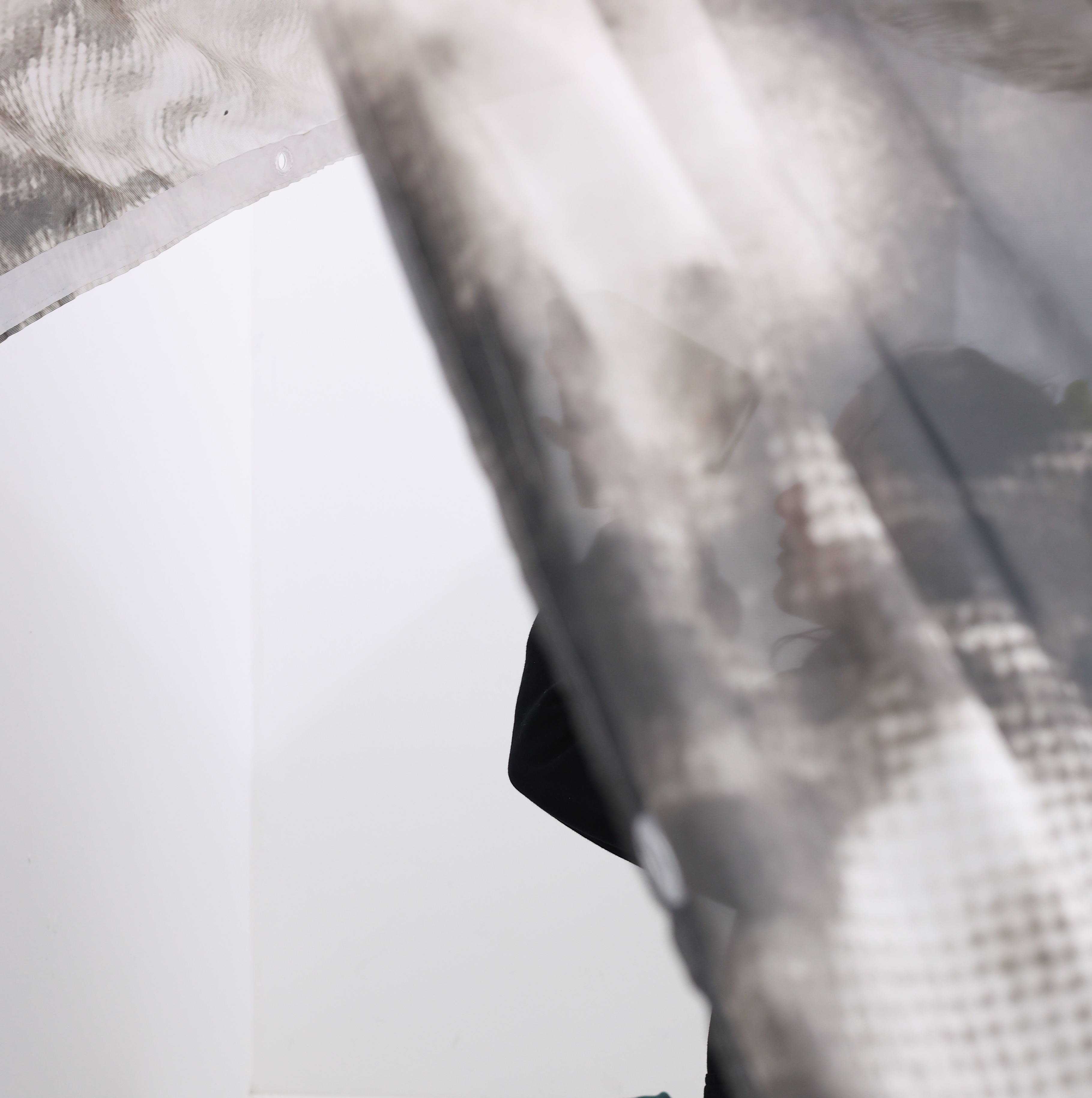 The entire title of the piece is : Testimonial photograph of a screen of a still from a performative video of an experience of failure which doesn't exist in the woods. This accidental image became a game of what we see, an object as a possibility to interrogate the truth in photography. The place where the photograph was taken is just as important in the way that the forest refers us to imaginary worlds as much as to struggles, and that it remains a blurred, uncontrollable zone, just like the hand of man that eludes photography to make an image. Like a breath, the accident gives rise to an aesthetic moment, a sensitive potential.